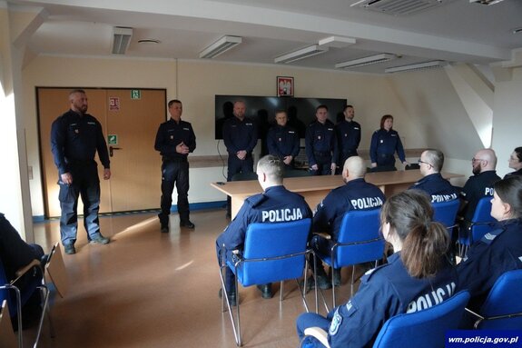 Po czterech tygodniach zakończyło się pierwsze w tym roku w garnizonie warmińsko-mazurskim szkolenie zawodowe aspiranckie. W kursie wzięło udział 48 funkcjonariuszy z regionu. Zdany pozytywnie egzamin końcowy pozwoli im awansować na wyższy stopień służbowy. Z uczestnikami kursu na jego zakończenie spotkał się insp. Mirosław Elszkowski Komendant Wojewódzki Policji w Olsztynie.