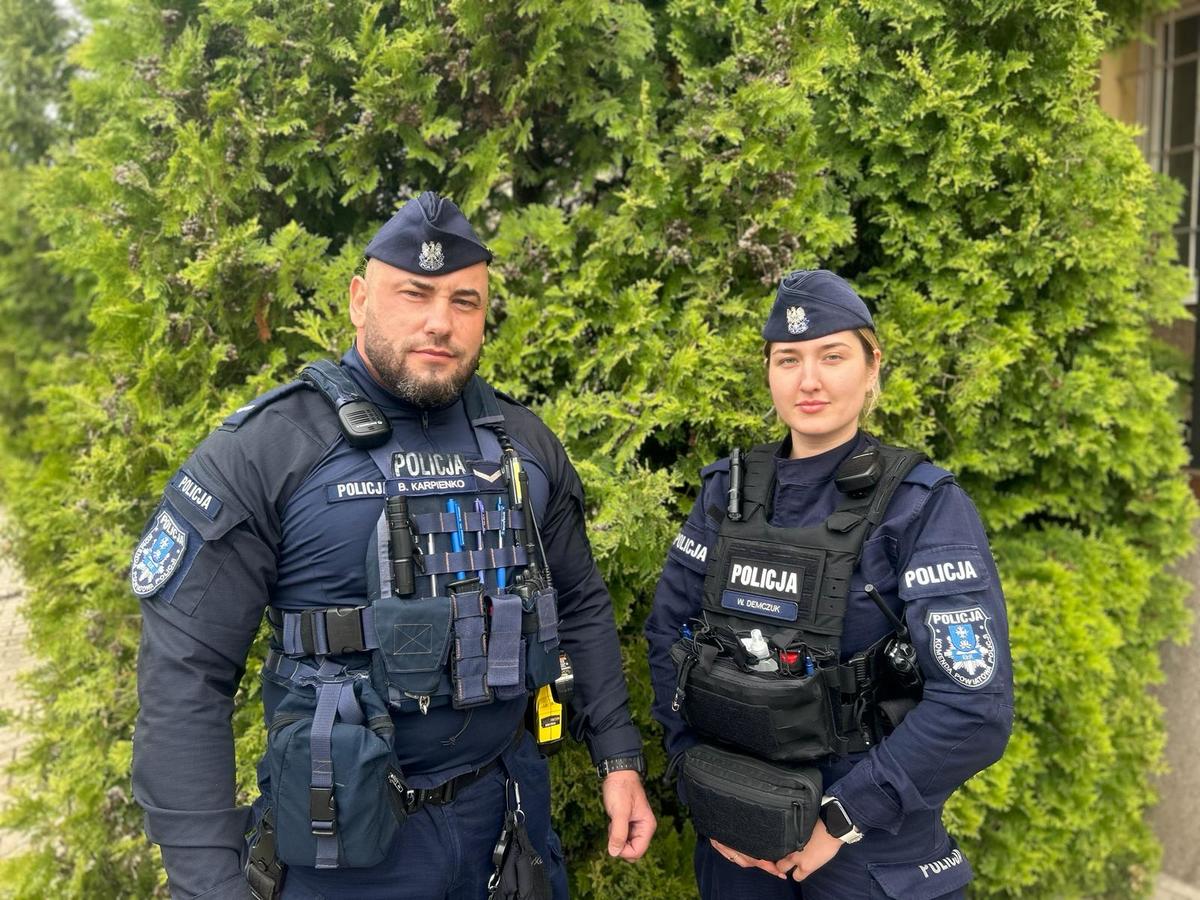 W piątek (10.05.2024) policjanci pełniąc służbę patrolową, zostali powiadomieni o pożarze w mieszkaniu na parterze w bloku w Ełku. Policyjny patrol, w skład którego wchodzili sierż. Bartosz Karpienko i post. Weronika Demczuk, jako pierwszy dotarł na miejsce zgłoszenia.