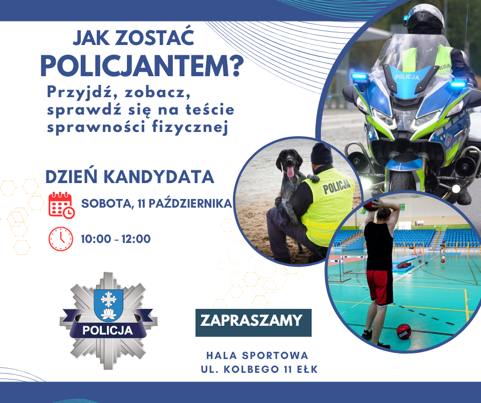 Każdy zainteresowany służbą w Policji może dowiedzieć się, jak wygląda rekrutacja, skorzystać z rad policyjnych instruktorów, a przede wszystkim sprawdzić się na torze sprawnościowym, który jest jednym z etapów podczas rekrutacji do służby w Policji. 11 października 2025 roku w Ełku w hali sportowej przy ul. Kolbego.
