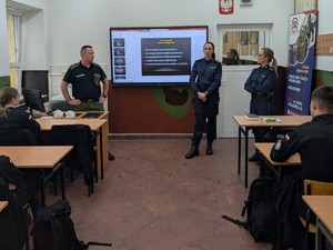Z tej okazji policjanci z Ełku i funkcjonariusze Straży Granicznej z Gołdapi spotkali się z młodzieżą Liceum Ogólnokształcącego o profilu mundurowym w Ełku.