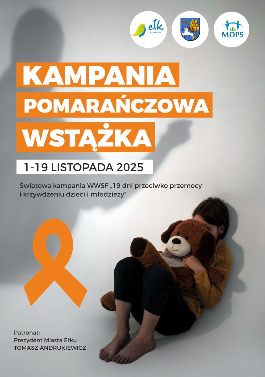 Policjanci kolejny raz włączają się w ogólnoświatową kampanię "Pomarańczowa wstążka" - 19 dni przeciwko przemocy i krzywdzeniu dzieci i młodzieży. Działania w Ełku odbywają się w dniach 1-19 listopada 2025 r.