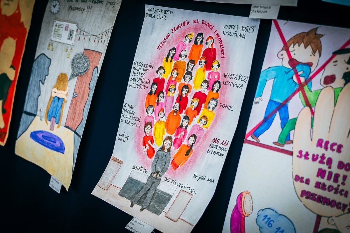 Finałowi kampanii towarzyszyło rozstrzygnięcie konkursu plastycznego zorganizowanego przez Zespól Interdyscyplinarny Gminy Ełk pod hasłem „STOP PRZEMOCY, Moc w Nas- razem przeciwko przemocy”. Policjantka wspólnie z przedstawicielami Gminnego Ośrodka Społecznego w Ełku wręczyła nagrody uczniom szkół podstawowych z gminy Ełk, wyróżnionych za najciekawsze prace plastyczne promujące bezpieczne i szczęśliwe dzieciństwo. Każdy z uczestników usłyszał również słowa uznania za zaangażowanie i kreatywność.