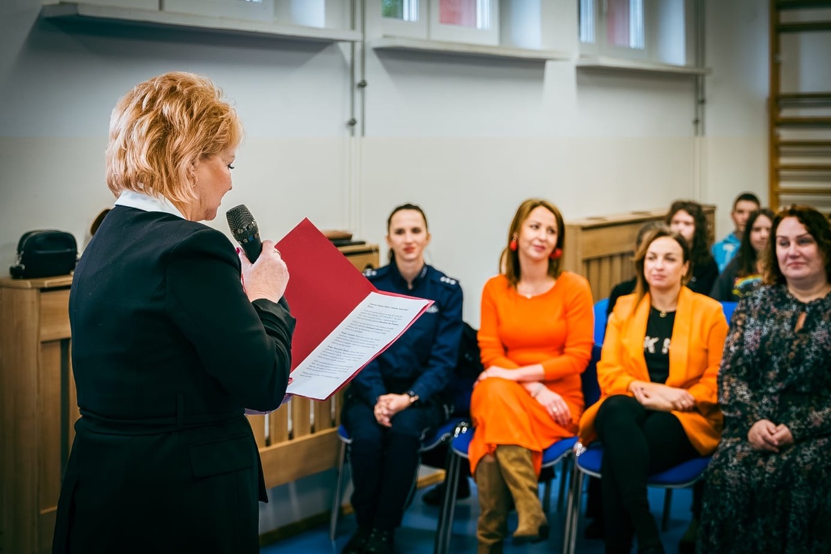 Wczoraj, (18.11.2025 r.) w Szkole Podstawowej im. Lecha Aleksandra Kaczyńskiego w Chełchach odbyło się podsumowanie kampanii „Dzieciństwo bez przemocy” oraz „Pomarańczowej wstążki”, które ma na celu ochronę najmłodszych i uwrażliwienie społeczeństwa na krzywdę dzieci. W działania aktywnie włączyli się policjanci z Ełku, którzy wspólnie z przedstawicielami Gminnego Ośrodka Społecznego w Ełku od początku kampanii prowadzili spotkania profilaktyczne w szkołach i przypominali dzieciom oraz rodzicom, jak ważne jest reagowanie na wszelkie przejawy przemocy oraz gdzie szukać pomocy w sytuacjach zagrożenia.