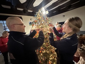 Wyjątkowa choinka stanęła w Klubie Senior + w Ełku. Na świątecznym drzewku pojawiły się odblaskowe, kolorowe zawieszki. To dzięki dobrej współpracy międzypokoleniowej i integracji, bo w ubieranie zaangażowali się seniorzy, przedszkolaki, pracownicy socjalni i policjanci. To niecodzienne spotkanie było też okazją do bliższego poznania, rozmów na temat bezpieczeństwa. Dzielnicowa przeczytała przedszkolakom bajkę z morałem.