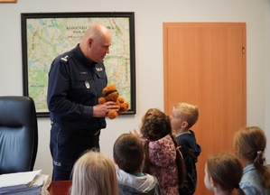Wyjątkowi goście w komendzieGrupa 6-latków z przedszkola Omnibus w Chełchach odwiedziła komendę i miała okazję przyjrzeć się pracy policjantów. Dodano: 17.10.2025
